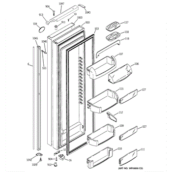 The Door Bin is an OEM part for GE refrigerators. It is a convenient storage compartment located on the interior of the refrigerator door, designed to hold and organize smaller items such as condiments, jars, or beverages.