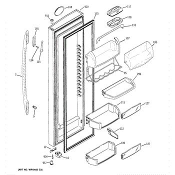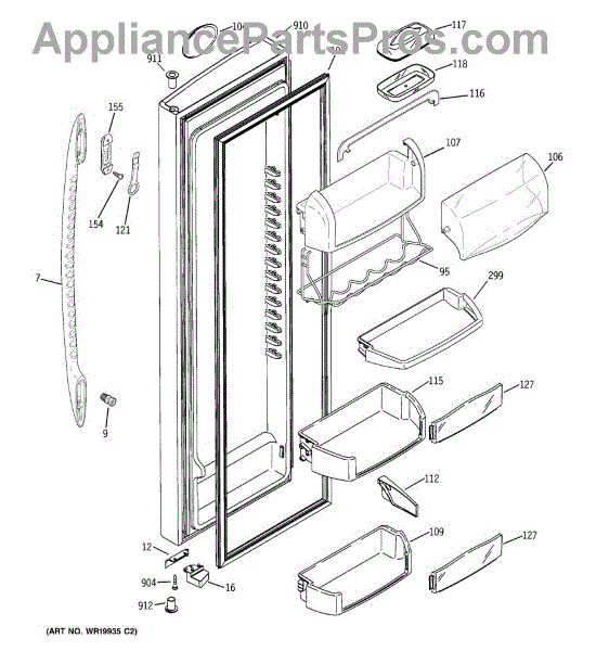 The Door Bin is an OEM part for GE refrigerators. It is a convenient storage compartment located on the interior of the refrigerator door, designed to hold and organize smaller items such as condiments, jars, or beverages.