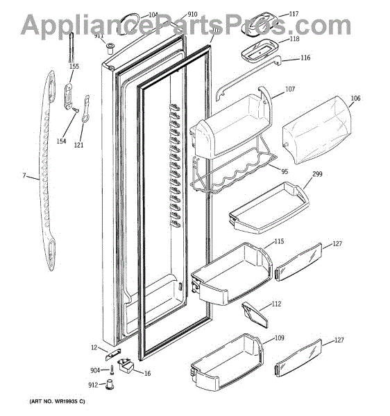 The Door Bin is an OEM part for GE refrigerators. It is a convenient storage compartment located on the interior of the refrigerator door, designed to hold and organize smaller items such as condiments, jars, or beverages.
