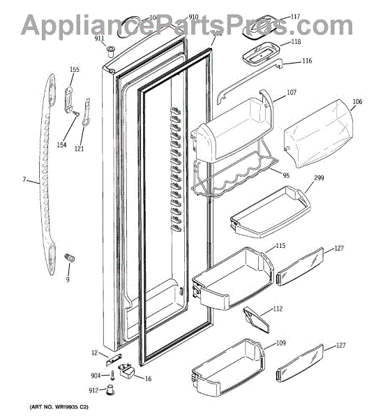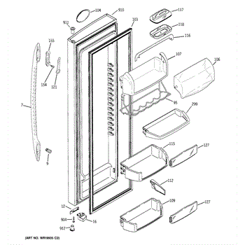 The Door Bin is an OEM part for GE refrigerators. It is a convenient storage compartment located on the interior of the refrigerator door, designed to hold and organize smaller items such as condiments, jars, or beverages.