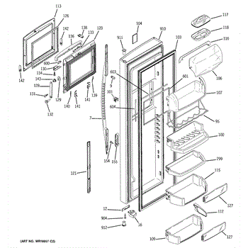 The Door Bin is an OEM part for GE refrigerators. It is a convenient storage compartment located on the interior of the refrigerator door, designed to hold and organize smaller items such as condiments, jars, or beverages.