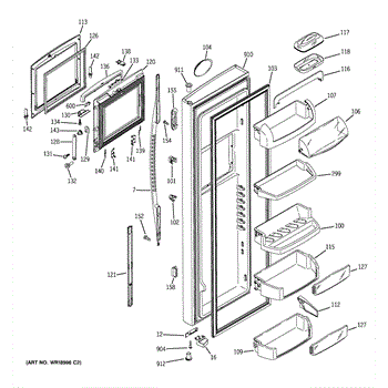 The Door Bin is an OEM part for GE refrigerators. It is a convenient storage compartment located on the interior of the refrigerator door, designed to hold and organize smaller items such as condiments, jars, or beverages.
