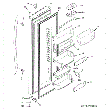 Replacement door bin for side-by-side refrigerators. Mounts inside the door to organize condiments, jars, and beverages. Replace if cracked or broken.