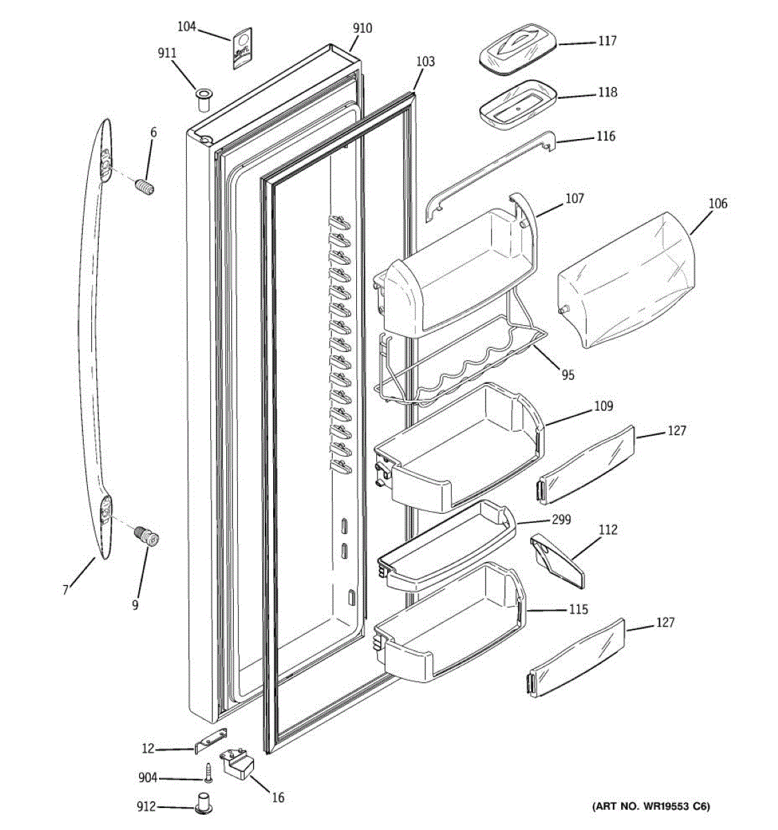Clear plastic door cover for the dairy compartment in your refrigerator door. Replace if cracked, broken, or missing. Snaps into place, no tools needed.