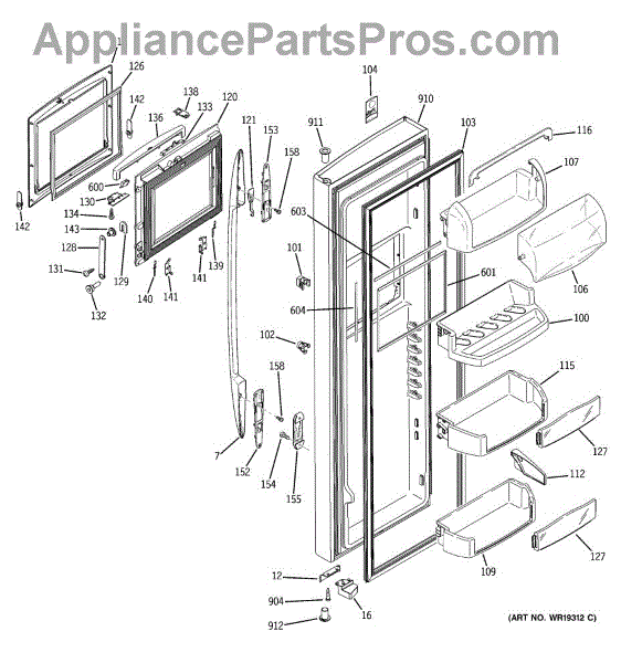 The Door Bin is an OEM part for GE refrigerators. It is a convenient storage compartment located on the interior of the refrigerator door, designed to hold and organize smaller items such as condiments, jars, or beverages.