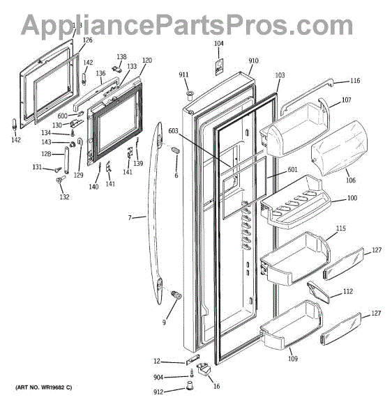 The Door Bin is an OEM part for GE refrigerators. It is a convenient storage compartment located on the interior of the refrigerator door, designed to hold and organize smaller items such as condiments, jars, or beverages.