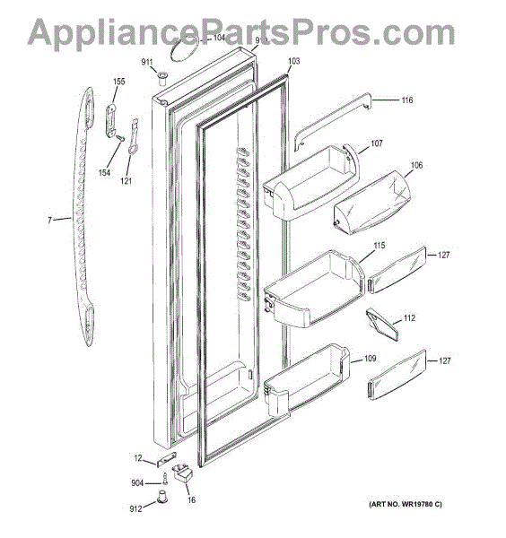 Clear plastic door cover for the dairy compartment in your refrigerator door. Replace if cracked, broken, or missing. Snaps into place, no tools needed.
