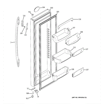 The Door Bin is an OEM part for GE refrigerators. It is a convenient storage compartment located on the interior of the refrigerator door, designed to hold and organize smaller items such as condiments, jars, or beverages.