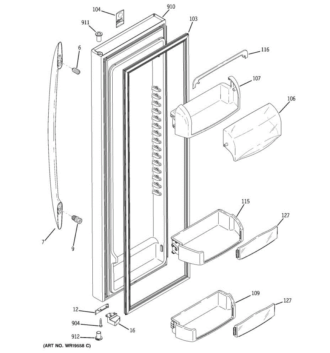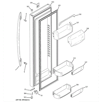 The Door Bin is an OEM part for GE refrigerators. It is a convenient storage compartment located on the interior of the refrigerator door, designed to hold and organize smaller items such as condiments, jars, or beverages.