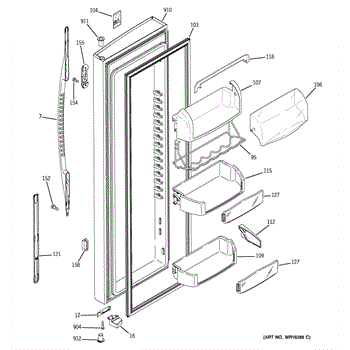The Door Bin is an OEM part for GE refrigerators. It is a convenient storage compartment located on the interior of the refrigerator door, designed to hold and organize smaller items such as condiments, jars, or beverages.