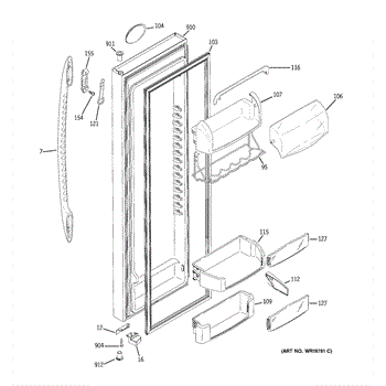The Door Bin is an OEM part for GE refrigerators. It is a convenient storage compartment located on the interior of the refrigerator door, designed to hold and organize smaller items such as condiments, jars, or beverages.