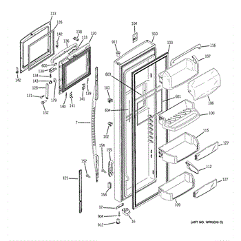 The Door Bin is an OEM part for GE refrigerators. It is a convenient storage compartment located on the interior of the refrigerator door, designed to hold and organize smaller items such as condiments, jars, or beverages.