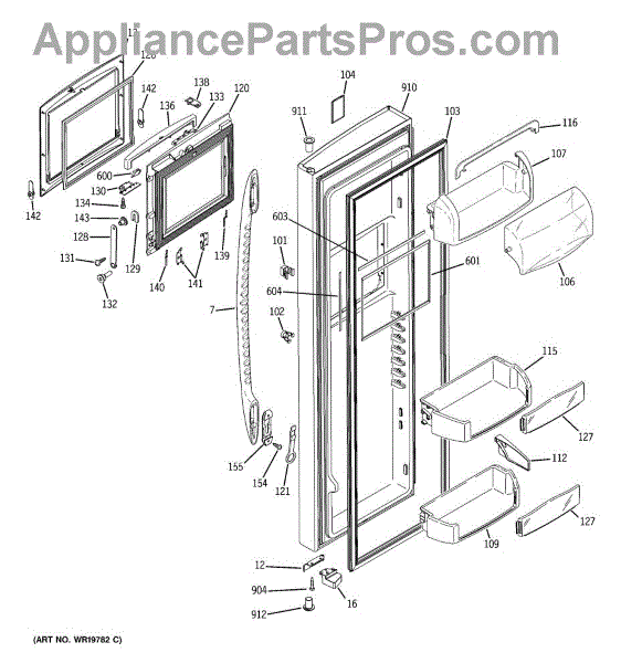 The Door Bin is an OEM part for GE refrigerators. It is a convenient storage compartment located on the interior of the refrigerator door, designed to hold and organize smaller items such as condiments, jars, or beverages.
