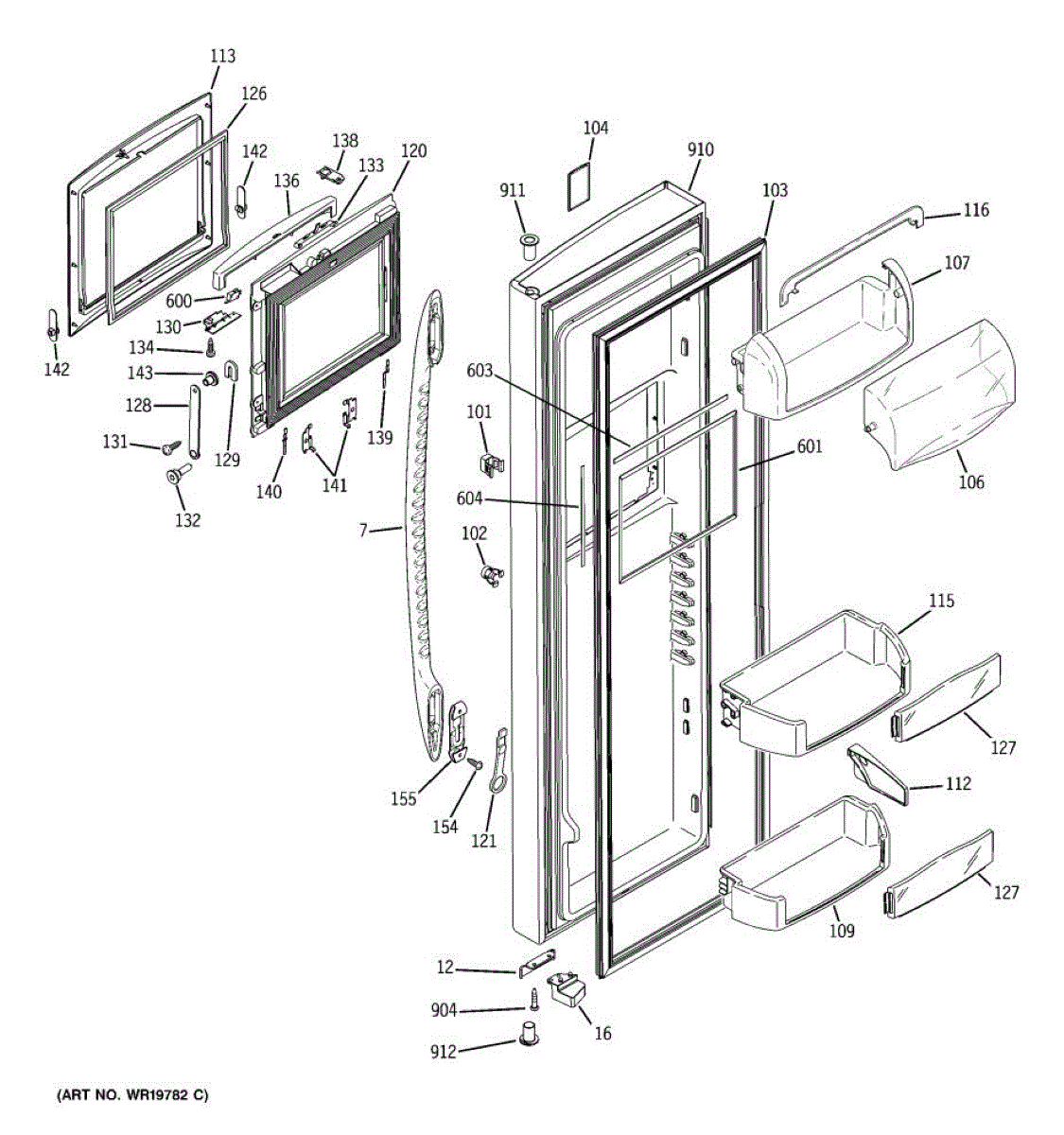 The Door Bin is an OEM part for GE refrigerators. It is a convenient storage compartment located on the interior of the refrigerator door, designed to hold and organize smaller items such as condiments, jars, or beverages.