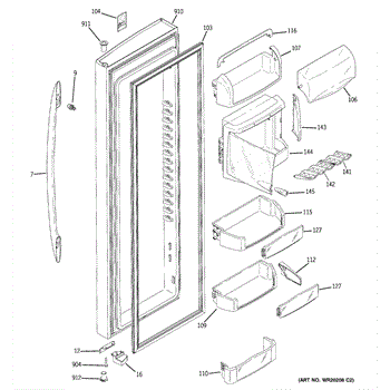 The Door Bin is an OEM part for GE refrigerators. It is a convenient storage compartment located on the interior of the refrigerator door, designed to hold and organize smaller items such as condiments, jars, or beverages.