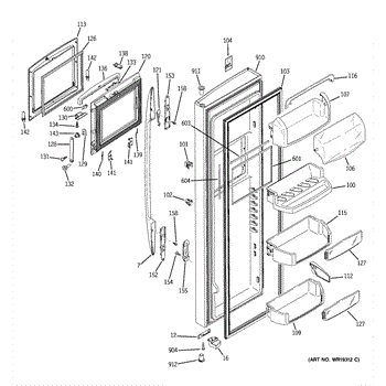 The Door Bin is an OEM part for GE refrigerators. It is a convenient storage compartment located on the interior of the refrigerator door, designed to hold and organize smaller items such as condiments, jars, or beverages.