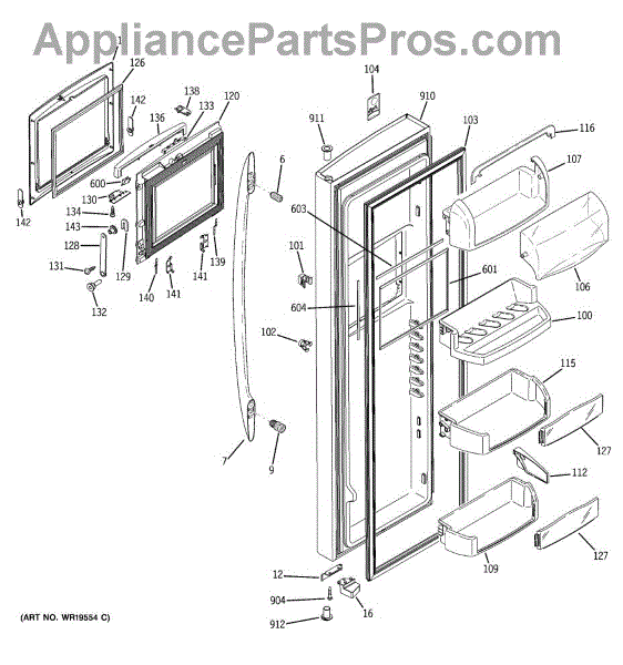 The Door Bin is an OEM part for GE refrigerators. It is a convenient storage compartment located on the interior of the refrigerator door, designed to hold and organize smaller items such as condiments, jars, or beverages.