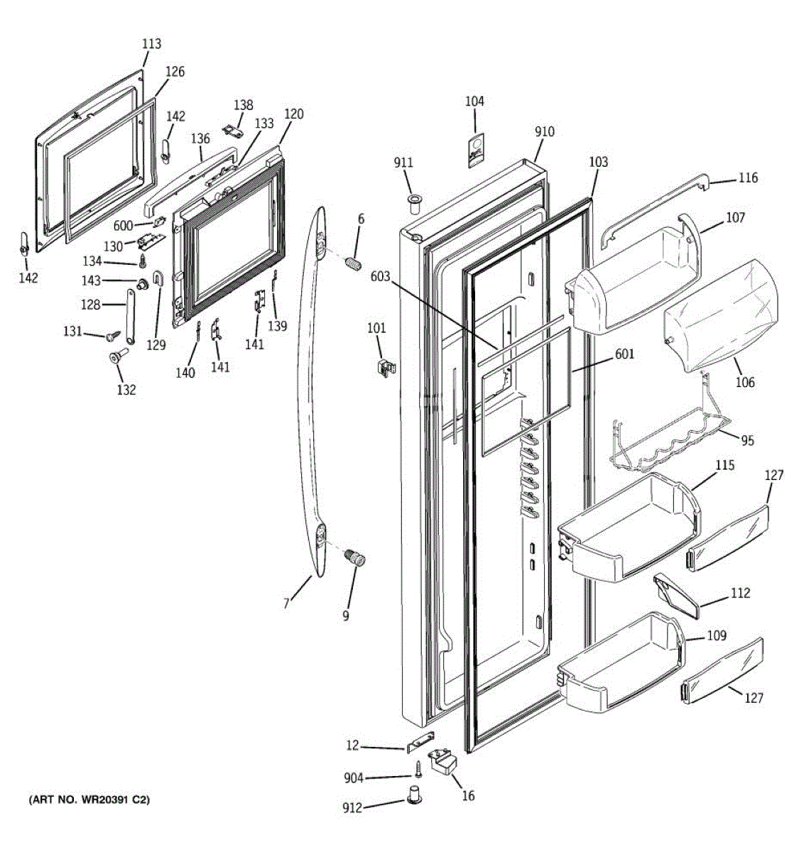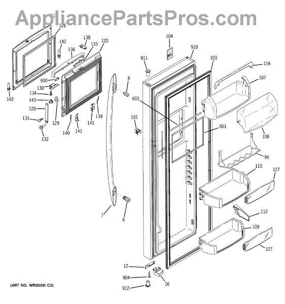 The Door Bin is an OEM part for GE refrigerators. It is a convenient storage compartment located on the interior of the refrigerator door, designed to hold and organize smaller items such as condiments, jars, or beverages.