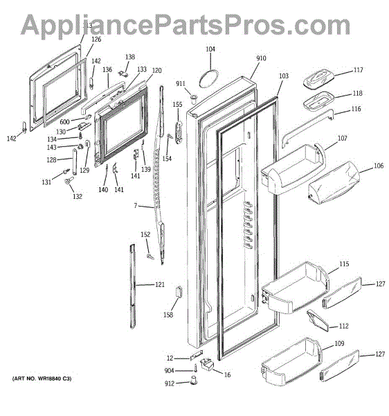 The Door Bin is an OEM part for GE refrigerators. It is a convenient storage compartment located on the interior of the refrigerator door, designed to hold and organize smaller items such as condiments, jars, or beverages.