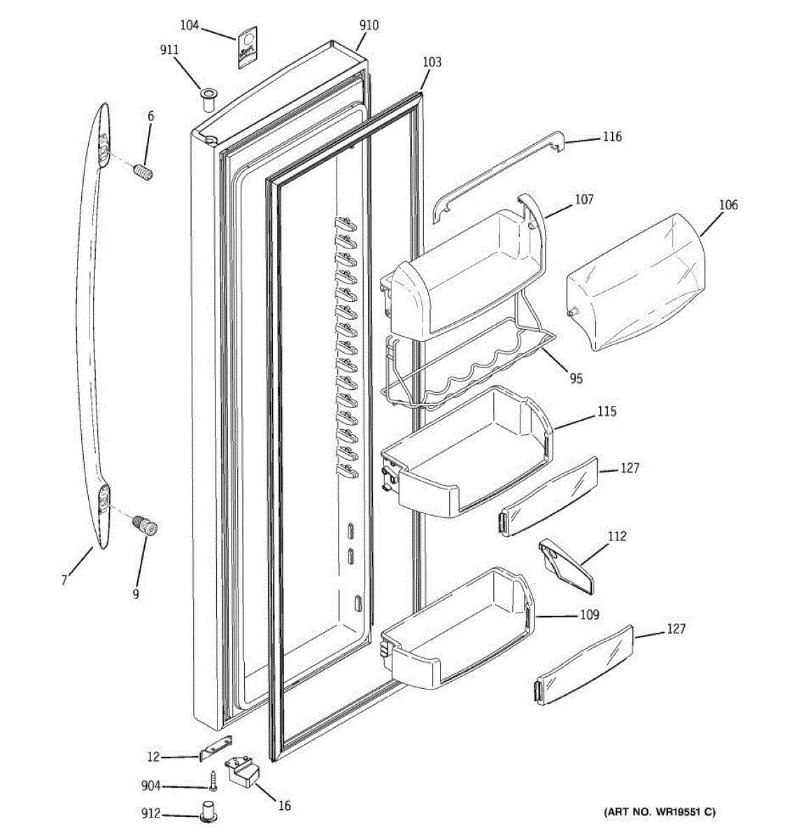 Replacement door bin for side-by-side refrigerators. Mounts inside the door to organize condiments, jars, and beverages. Replace if cracked or broken.