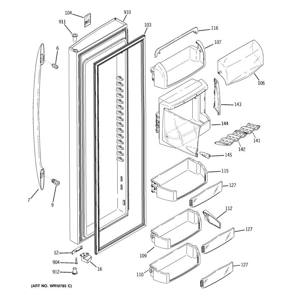 Clear plastic door cover for the dairy compartment in your refrigerator door. Replace if cracked, broken, or missing. Snaps into place, no tools needed.