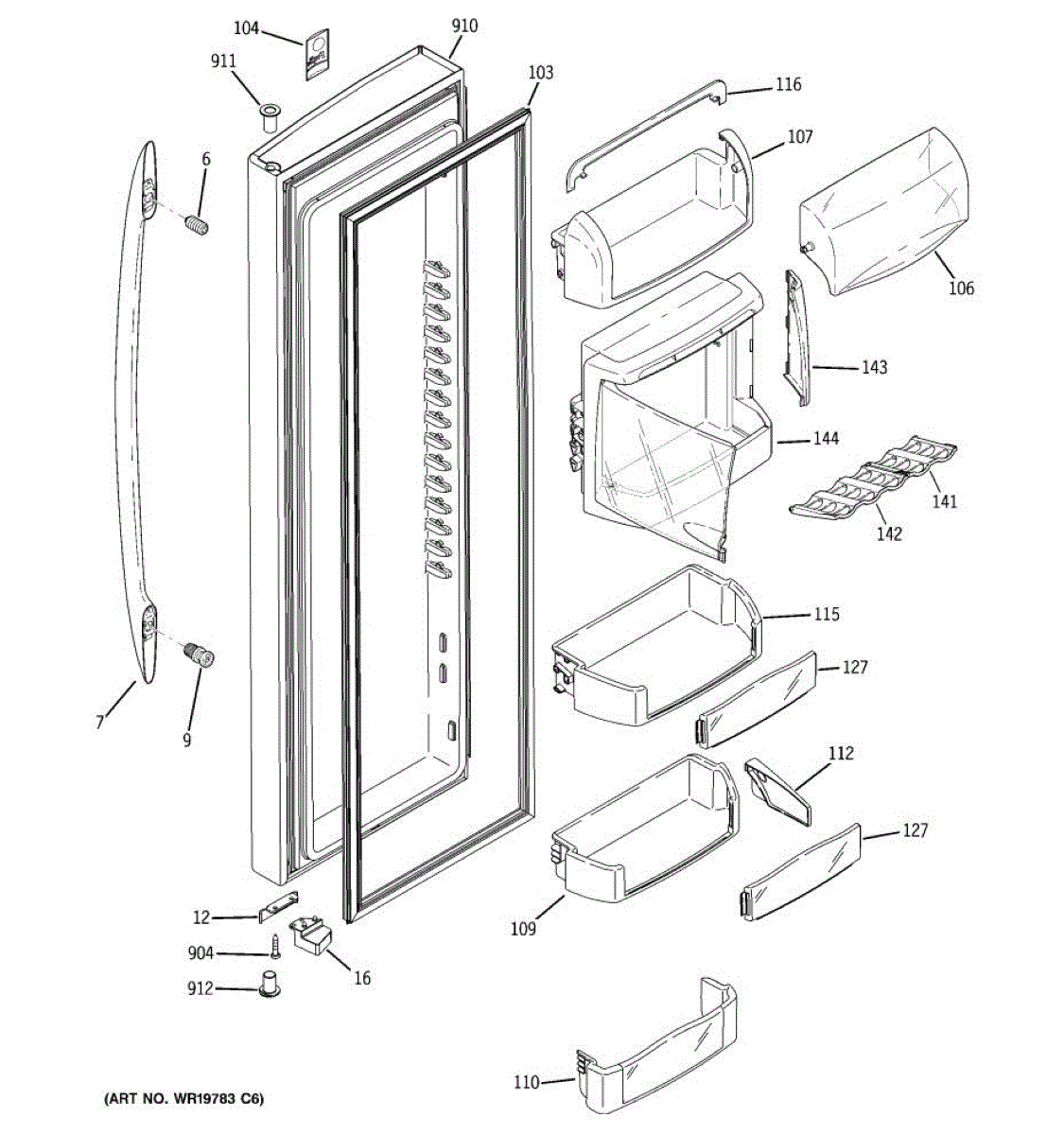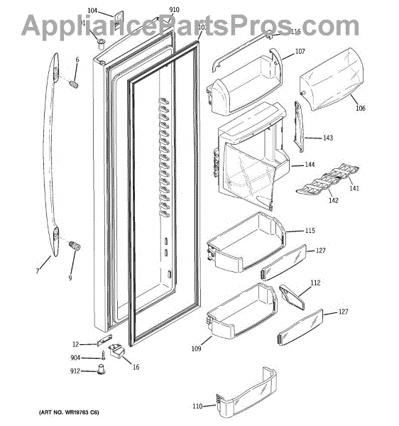 The Door Bin is an OEM part for GE refrigerators. It is a convenient storage compartment located on the interior of the refrigerator door, designed to hold and organize smaller items such as condiments, jars, or beverages.