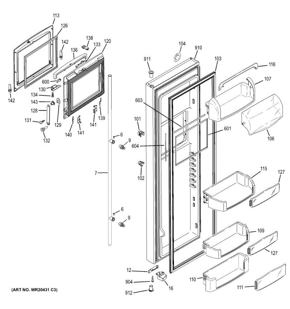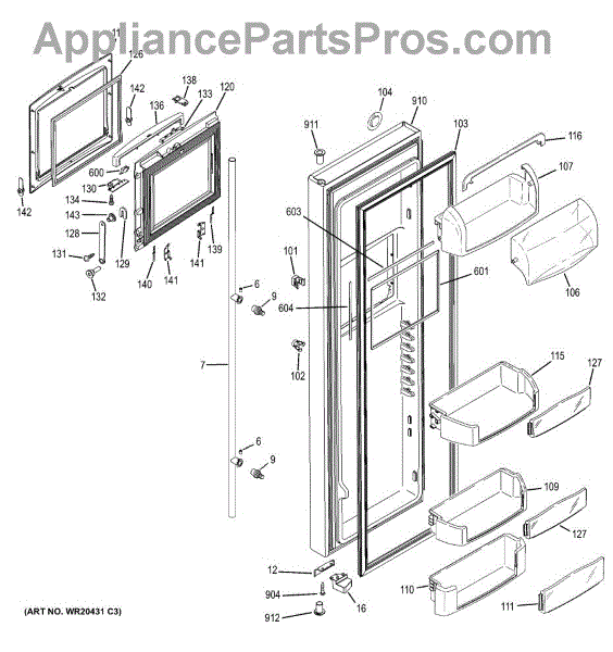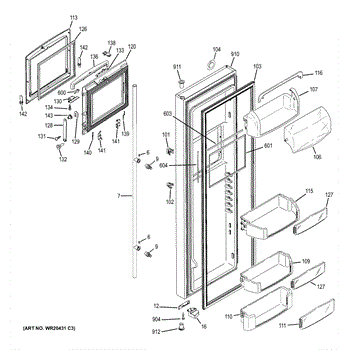 The Door Bin is an OEM part for GE refrigerators. It is a convenient storage compartment located on the interior of the refrigerator door, designed to hold and organize smaller items such as condiments, jars, or beverages.