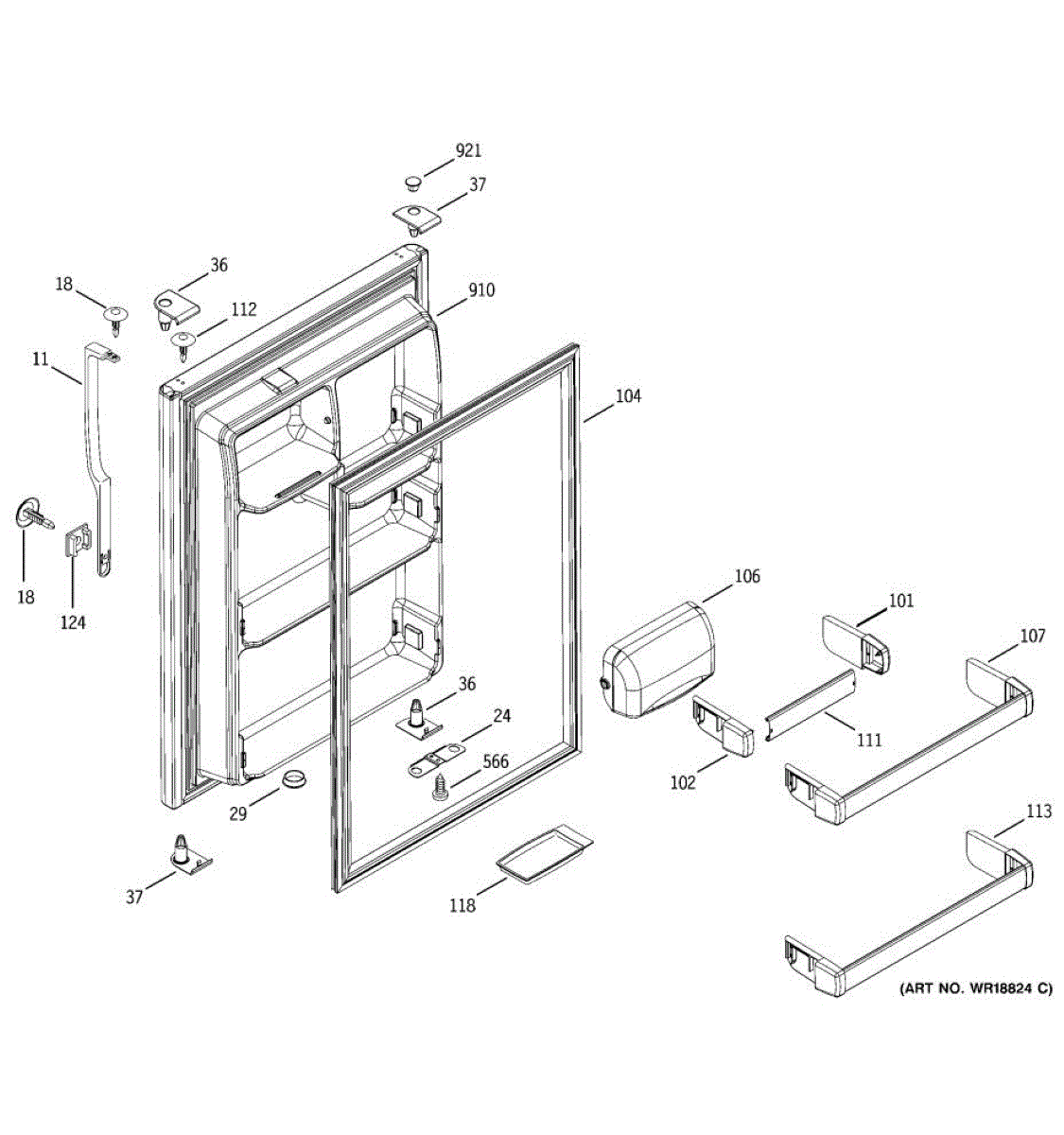 The Fresh Food Door Shelf Bar is an OEM part for GE refrigerators. This shelf bar provides a secure space for storing items like bottles, jars, and condiments. It helps maximize the storage capacity and keeps items organized and easily accessible.