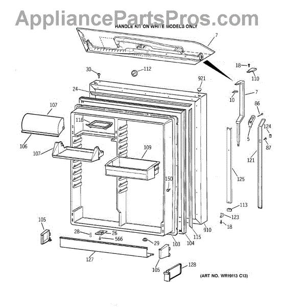 White outer panel for your refrigerator's freezer door. Replaces cracked, dented, or discolored door panels to restore your appliance's appearance.