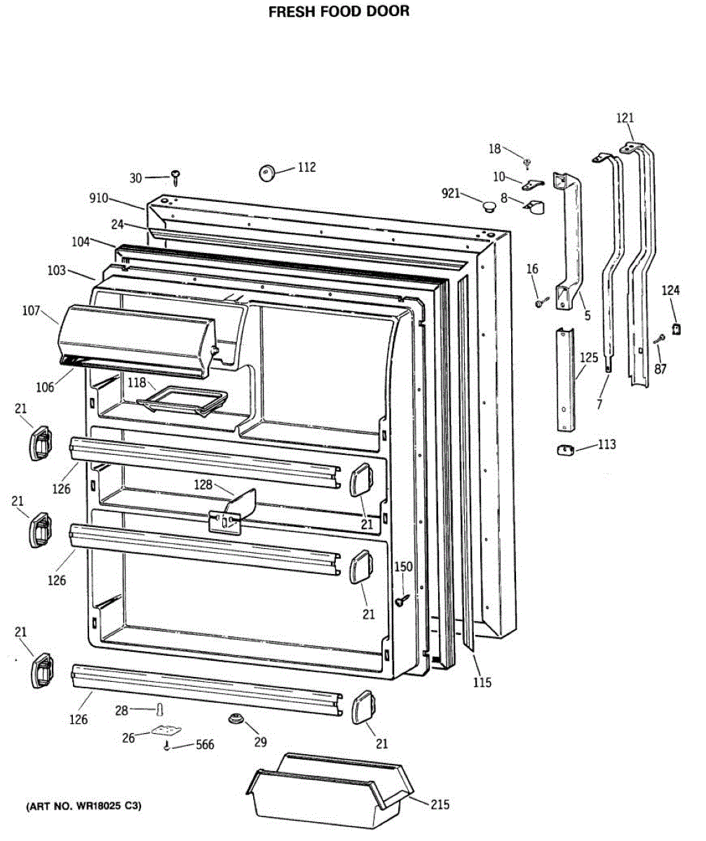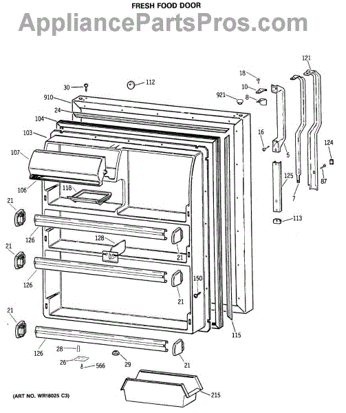 Parts for Ge TBE21JASTRWH: 02 - Fresh Food Door Parts