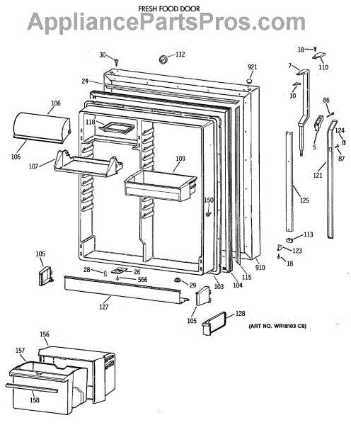 Parts for Ge TBE22PASRRAA: 02 - Fresh Food Door Parts