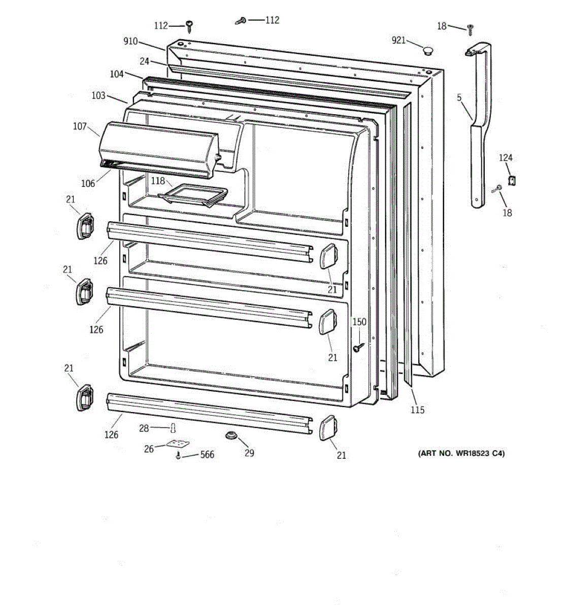 Seals your refrigerator's fresh food door to maintain temperature and prevent air leaks. Replace if you notice condensation, mold, or warm spots inside.