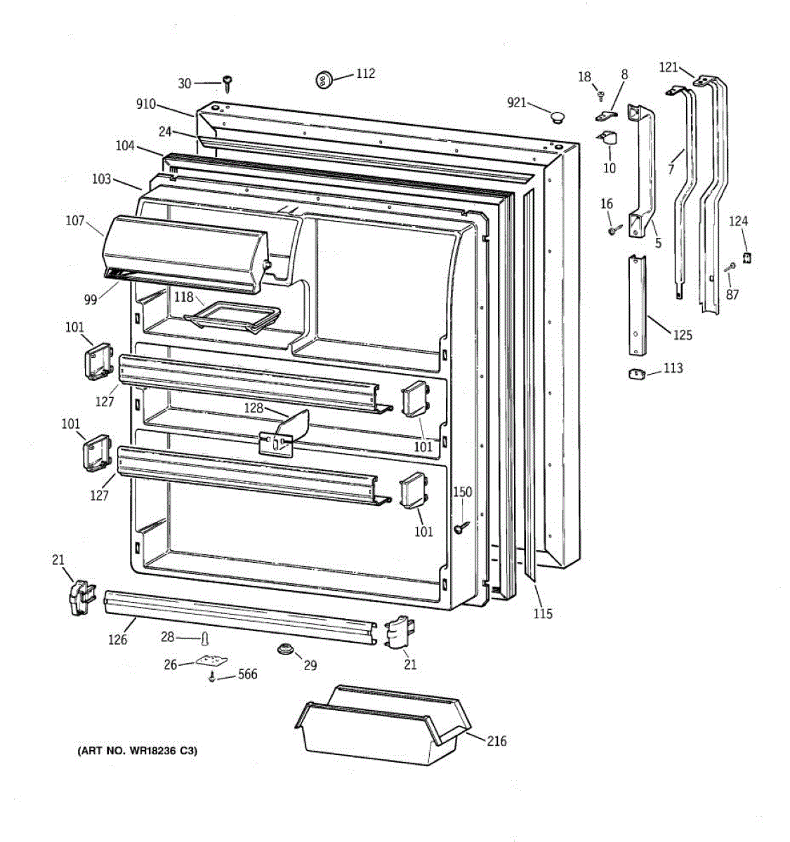 Seals the fresh food door to keep cold air in and prevent temperature loss. Replace if cracked, warped, or loose to restore efficiency. Confirm fit.