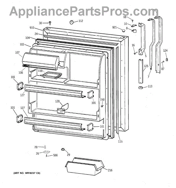 Seals the fresh food door to prevent cold air loss and maintain temperature. Replace if cracked, torn, or not sealing properly. Verify fit by model.