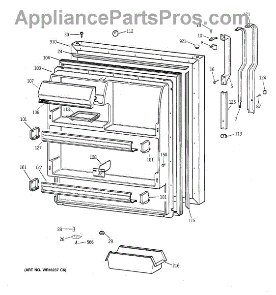 Seals the fresh food door to prevent cold air loss and maintain temperature. Replace if cracked, torn, or not sealing properly. Verify fit by model.