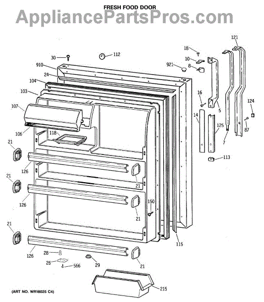 Seals your refrigerator's fresh food door to maintain temperature and prevent air leaks. Replace if you notice condensation, mold, or warm spots inside.