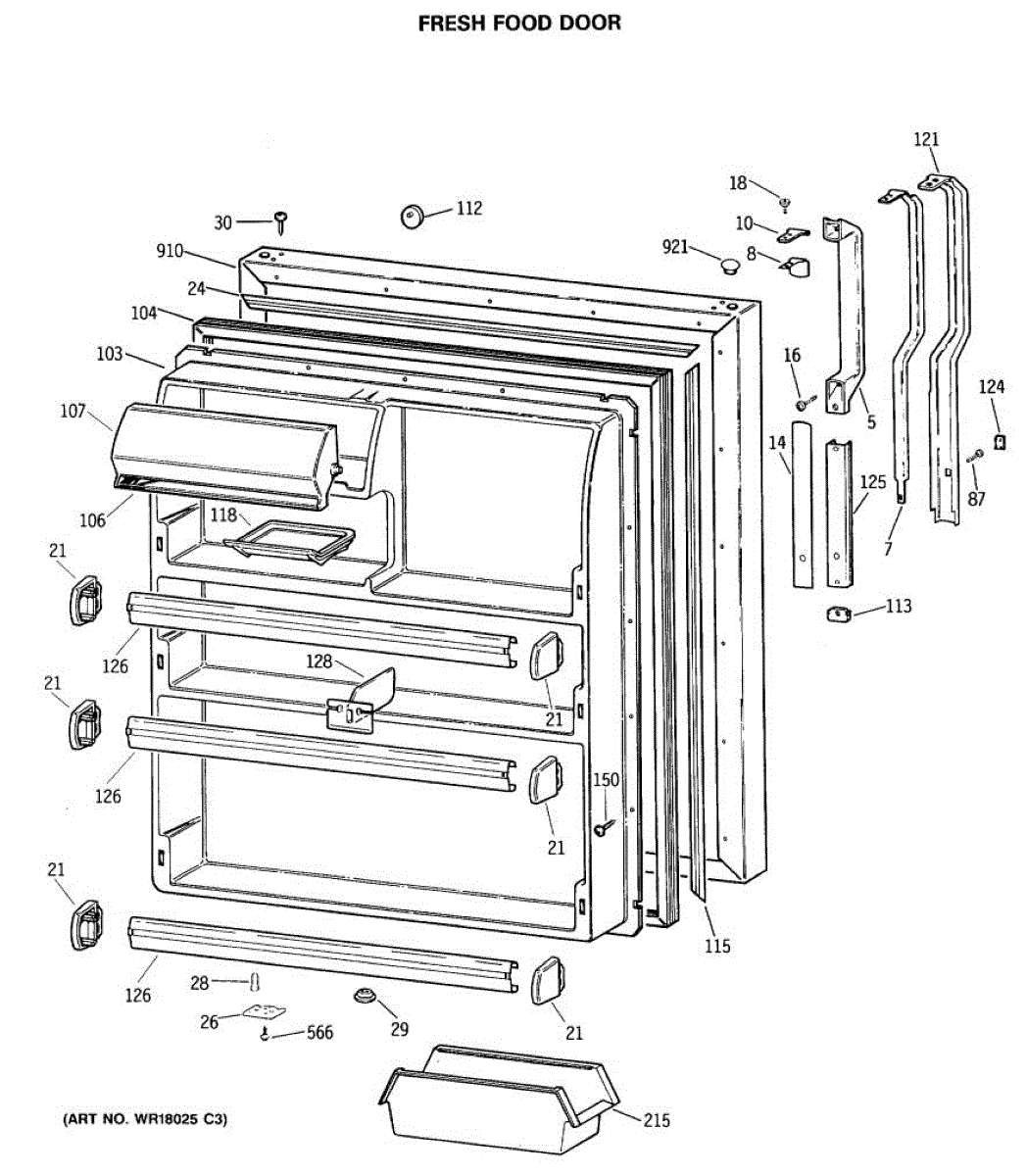 Seals your refrigerator's fresh food door to maintain temperature and prevent air leaks. Replace if you notice condensation, mold, or warm spots inside.