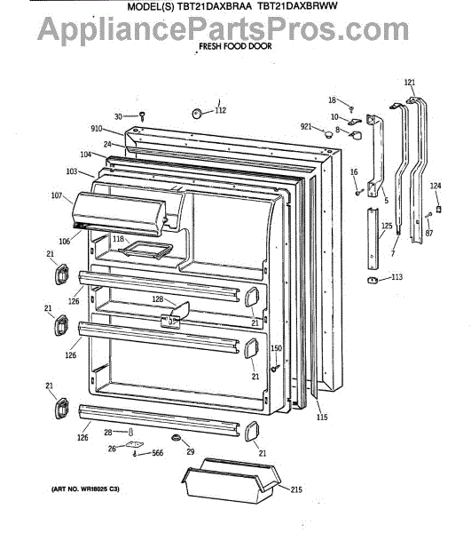 Seals your refrigerator's fresh food door to maintain temperature and prevent air leaks. Replace if you notice condensation, mold, or warm spots inside.