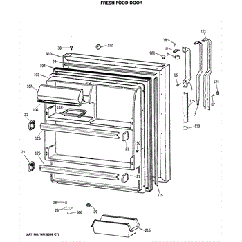 Seals the fresh food door to prevent cold air loss and maintain temperature. Replace if cracked, torn, or not sealing properly. Verify fit by model.