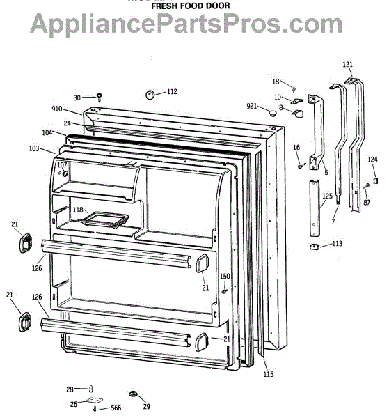 The Refrigerator Door Shelf is an OEM part for GE refrigerators. This shelf provides additional storage space on the refrigerator door, allowing for the convenient organization of smaller items such as condiments, bottles, and jars. It measures 23 inches by 2 inches. Please note, this bar does not come with the end caps, which must be ordered separately by model number.