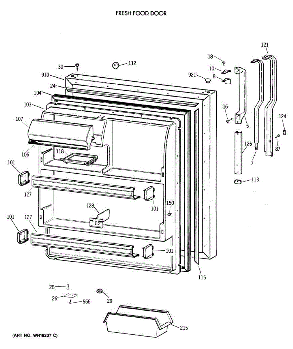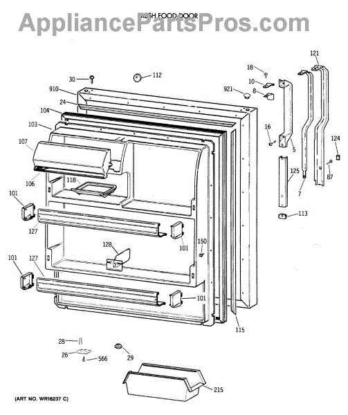 Parts for Ge TBX18MAXERAA: 02 - Fresh Food Door Parts