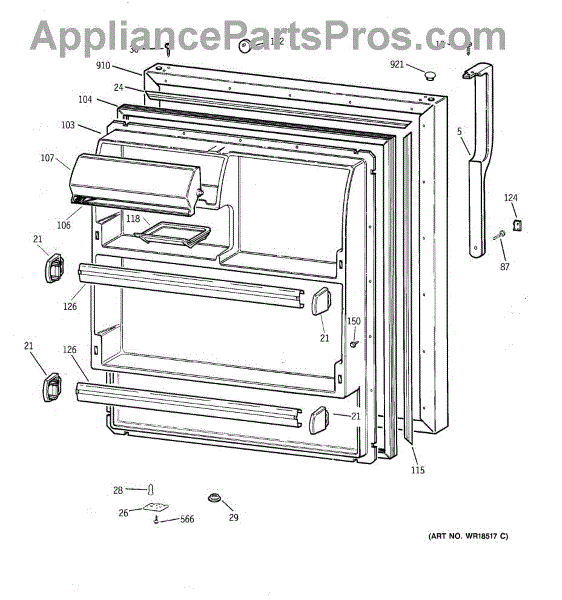 Parts for Ge TBX18SABALAA: 02 - Fresh Food Door Parts
