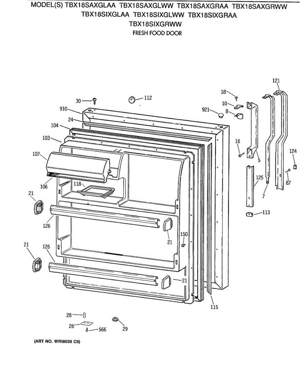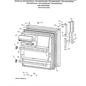 Parts for Ge TBX18SIXGRAA: 02 - Fresh Food Door Parts