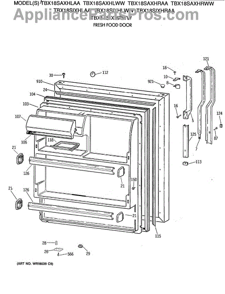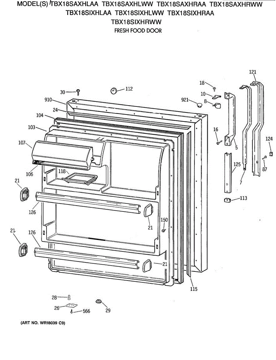 Parts for Ge TBX18SIXHRAA: 02 - Fresh Food Door Parts