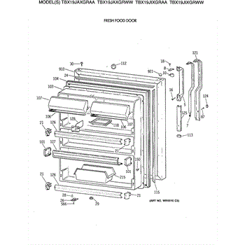 Parts for Ge TBX19JAXGRAA: 02 - Fresh Food Door Parts