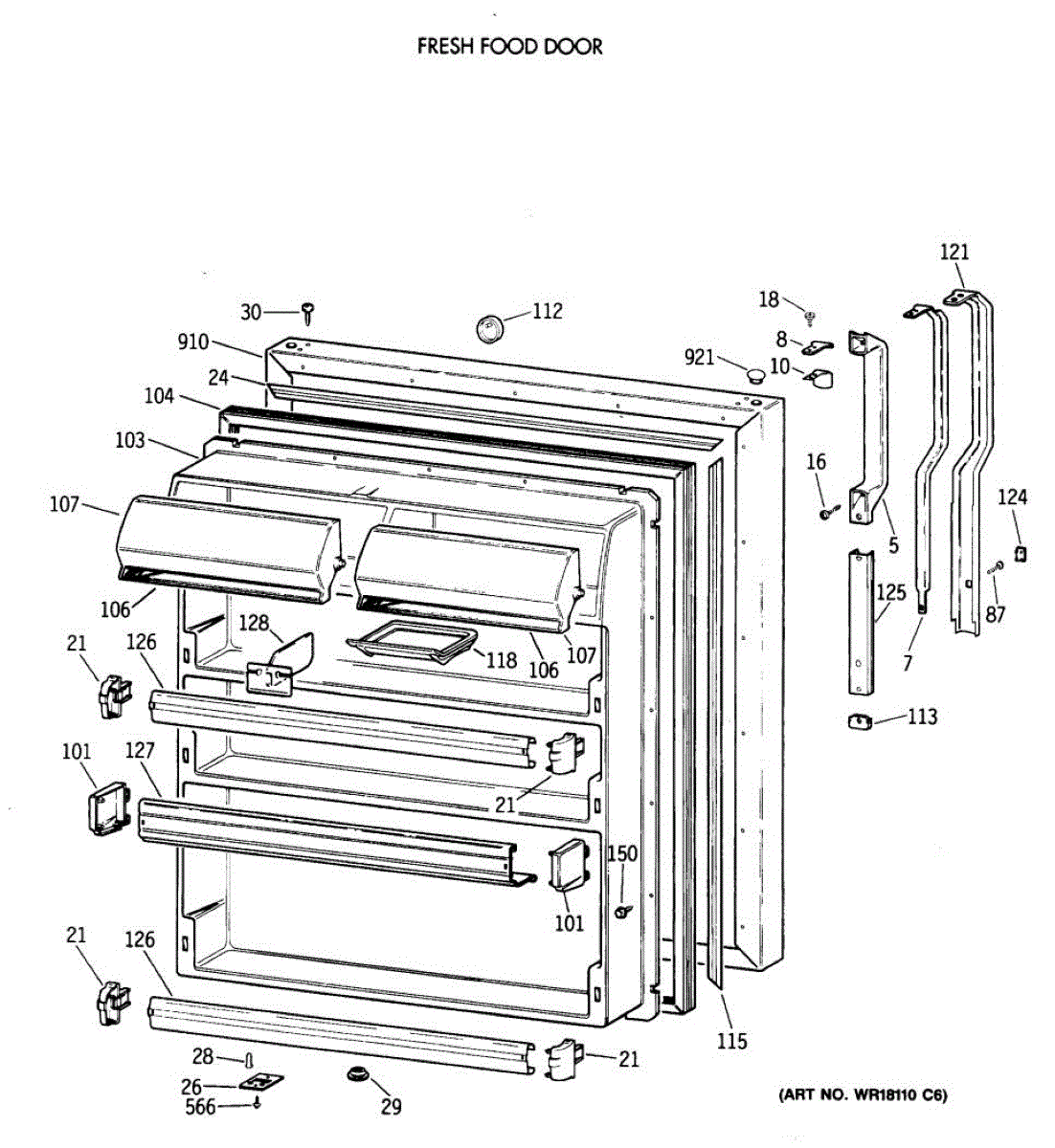 Seals the fresh food door to prevent cold air loss and maintain temperature. Replace if cracked, torn, or not sealing properly. Verify fit by model.