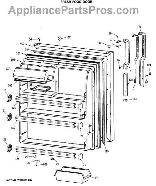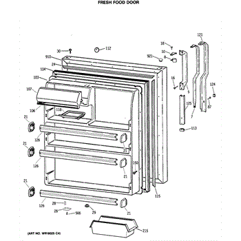 Seals your refrigerator's fresh food door to maintain temperature and prevent air leaks. Replace if you notice condensation, mold, or warm spots inside.