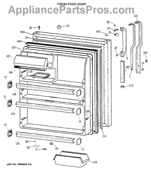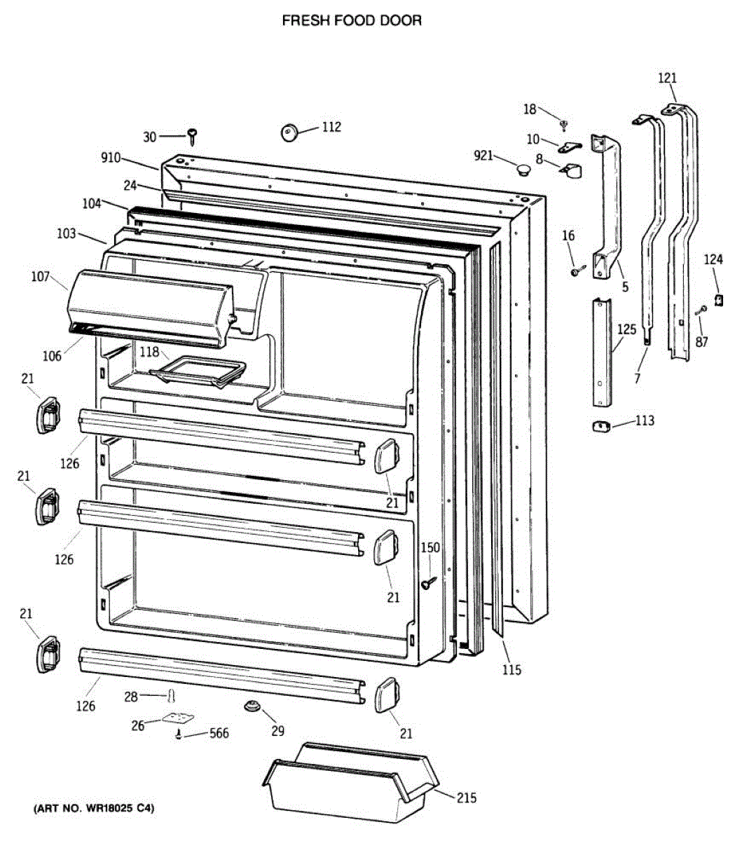 Seals your refrigerator's fresh food door to maintain temperature and prevent air leaks. Replace if you notice condensation, mold, or warm spots inside.