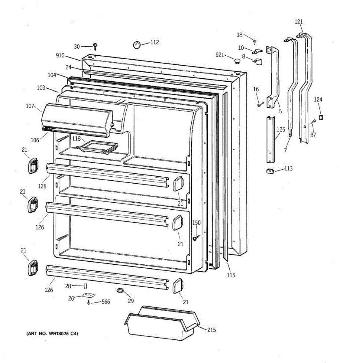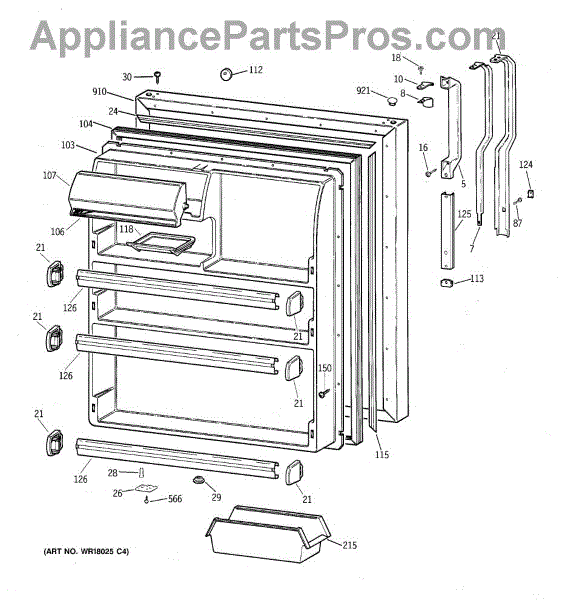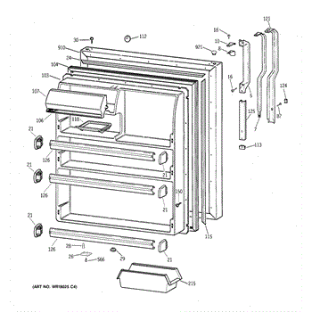 Parts for Ge TBX21DAXFRAA: 02 - Fresh Food Door Parts