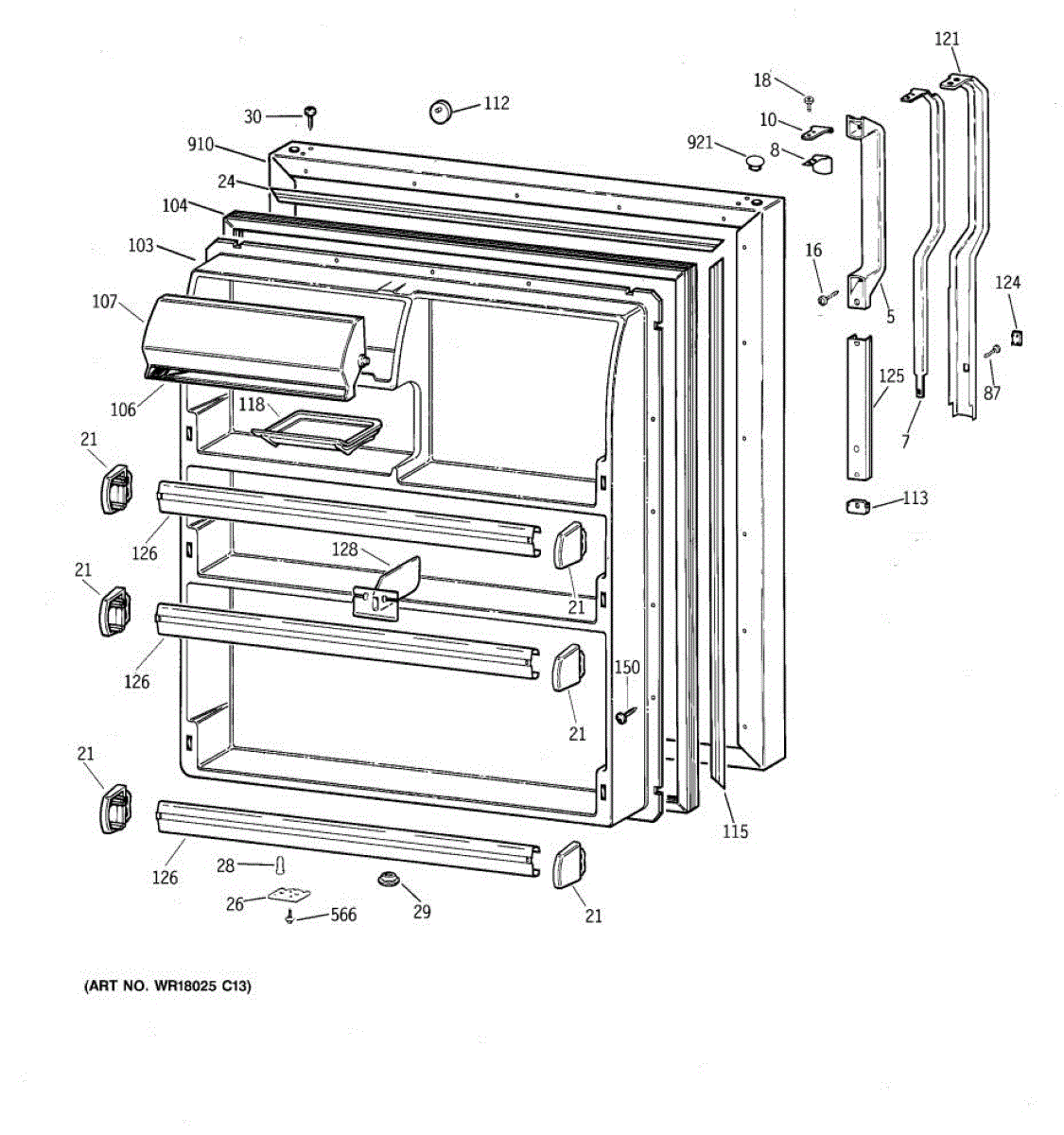 Seals your refrigerator's fresh food door to maintain temperature and prevent air leaks. Replace if you notice condensation, mold, or warm spots inside.